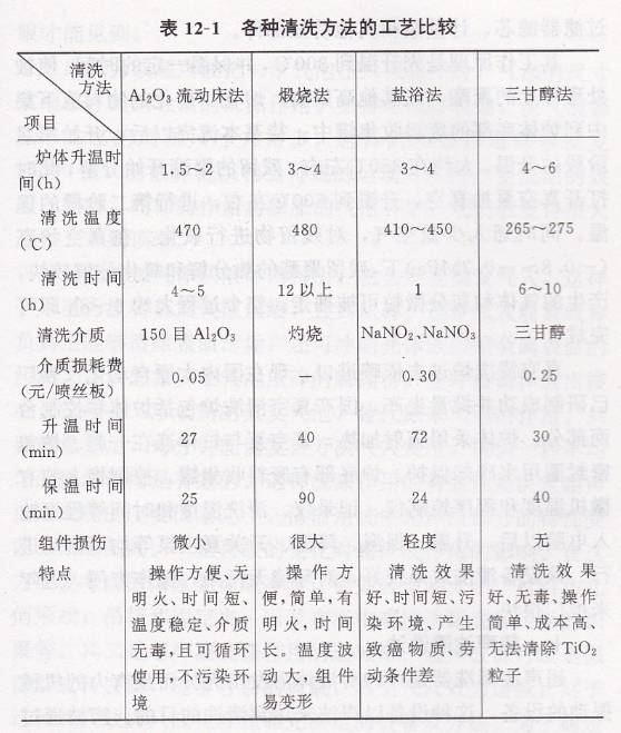 上述各种清洗方法的工艺比较如表12-1所示。